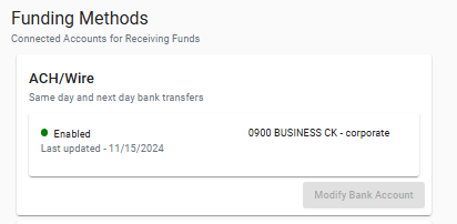 Now that ACH is connected you will see our other funding methods appear for connection.